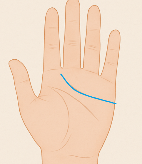 - 感情線がゆるやかにカーブしている人は、思いやりが深く仲間運が強い