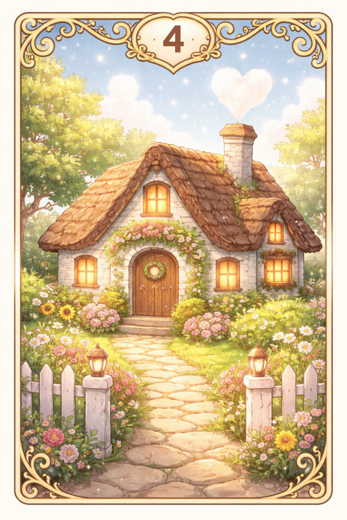 ルノルマンカードの「家」は、見た目の通り“家・住まい”を意味します。けれど占いで出てくる「家」は、ただの建物ではありません。あなたが安心できる場所、ほっとできる人間関係、守られている感覚――つまり心の安全基地そのものを表します。