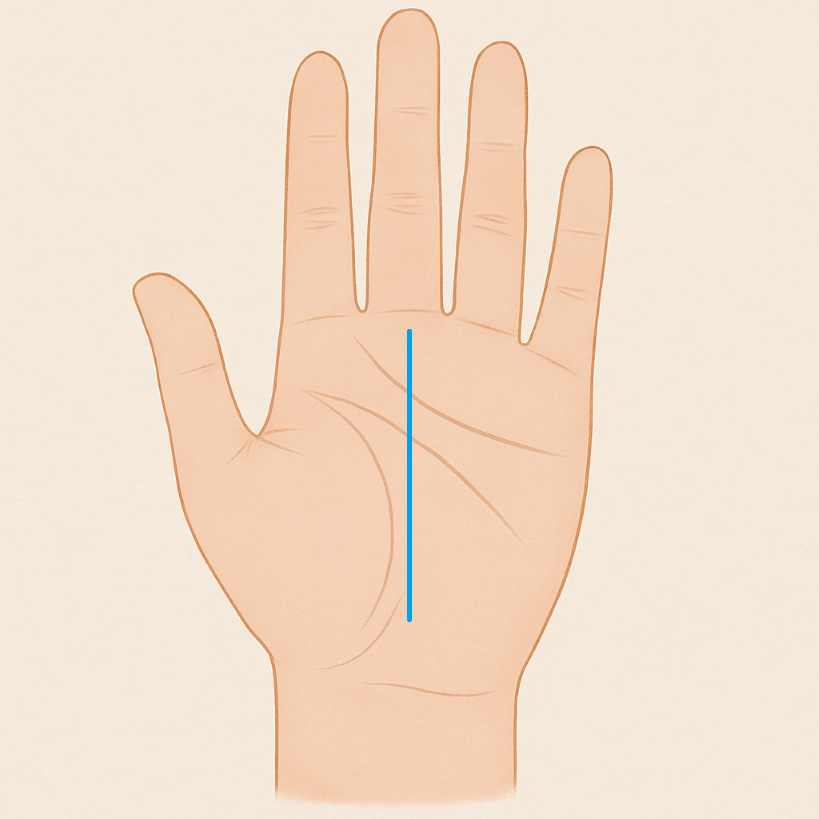 運命線は、手の中央を縦に上がる線で、仕事・社会的役割・人生の方向性を示します。